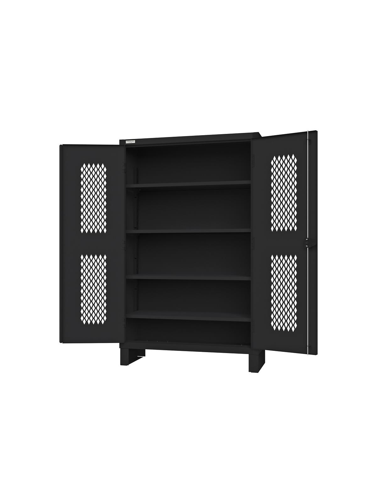 6"H base/legs which provide access for forklifts; pre-punched holes allow for bolting to the floor.