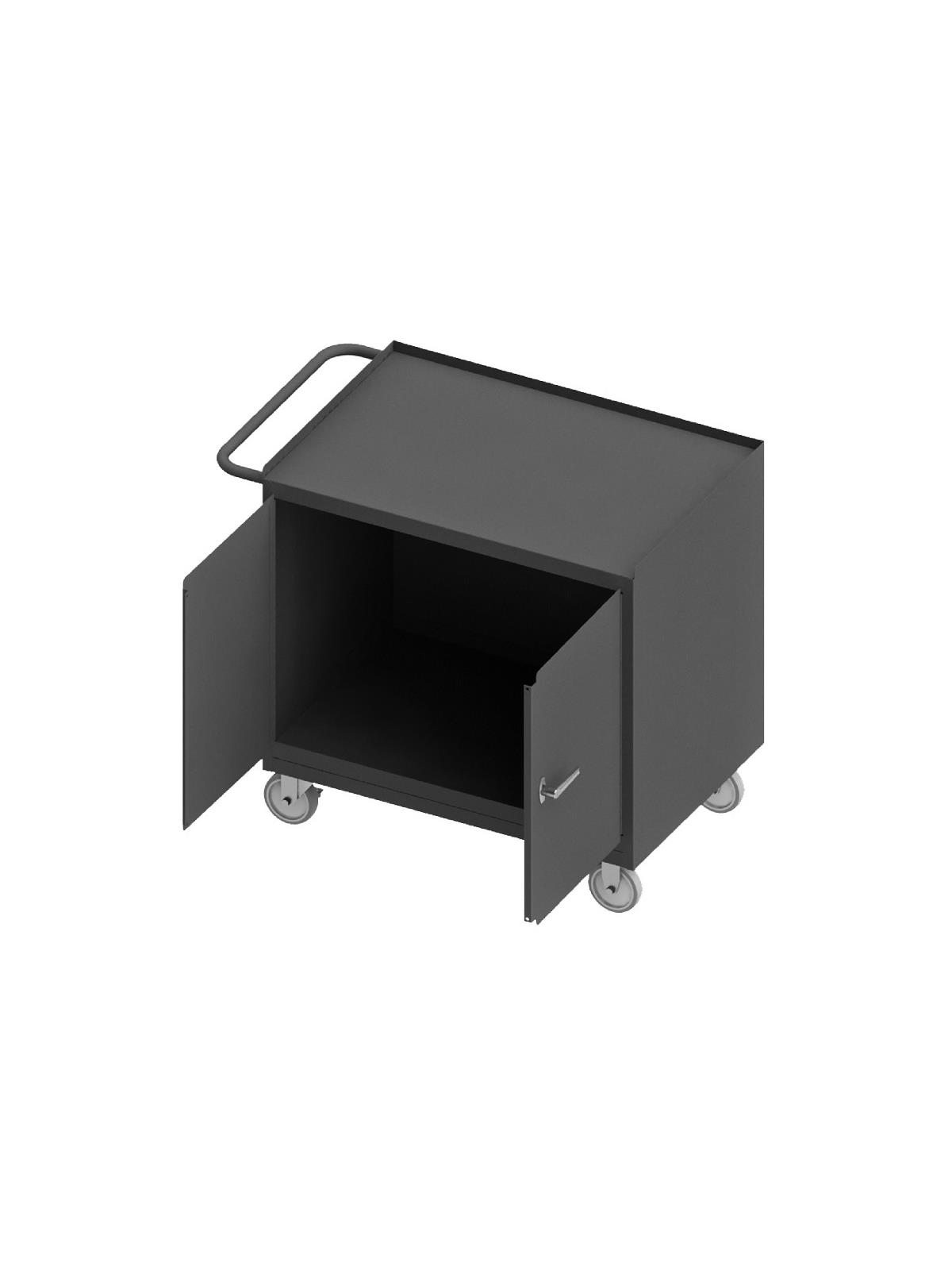 Bench cabinets are constructed of 14 gauge steel. Convenient sturdy work surface with back and end stops on the work surface prevents parts from falling off during transport (MT units not included). Tubular handle for easy maneuverability. Cabinet doors have a 3 point locking system with 4 keys. Rolls smoothly on 5" polyurethane bolt-on casters, (2) swivel with side brakes and (2) rigid. 36"W model has 1,200 lbs. capacity. 48"W model has 2,000 lbs. capacity and includes a floor lock to keep the unit in place while you work. FOB Shipping Point.