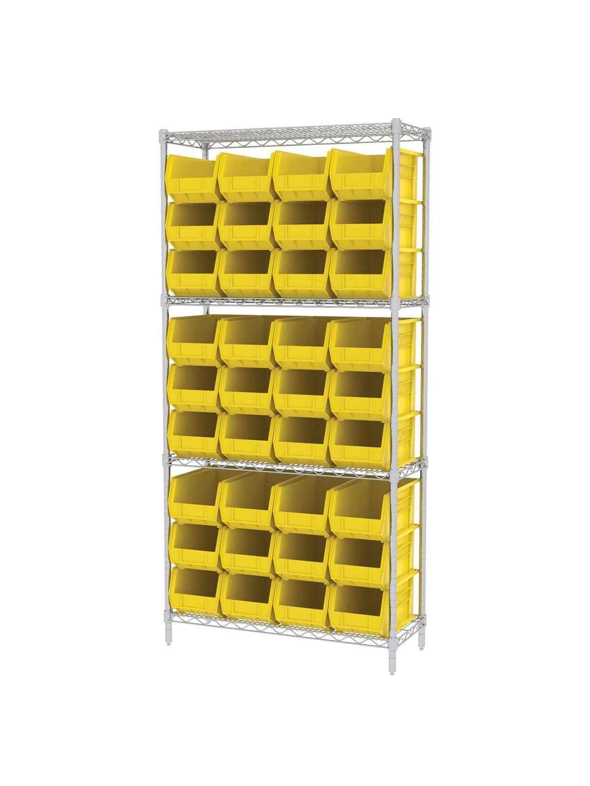 A wide variety of shelf configurations are possible with three sizes of shelving available. Durable AkroBins® feature a curved bottom hopper front, to enable easy access of small parts. Bins available in Blue, Red, Yellow, Stone, Green, or Semi-Clear. FOB Shipping Point.