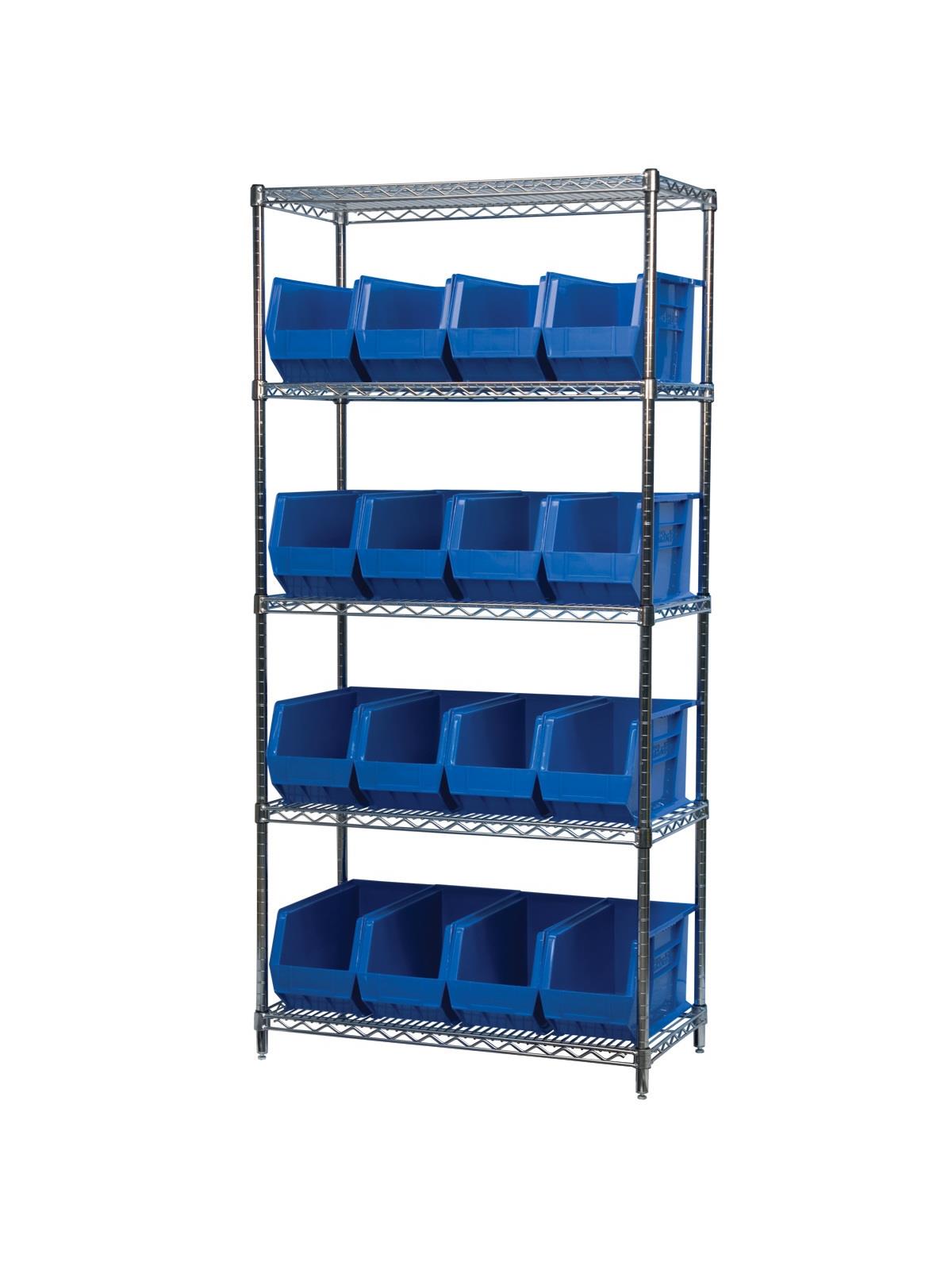 A wide variety of shelf configurations are possible with three sizes of shelving available. Durable AkroBins® feature a curved bottom hopper front, to enable easy access of small parts. Bins available in Blue, Red, Yellow, Stone, Green, or Semi-Clear. FOB Shipping Point.