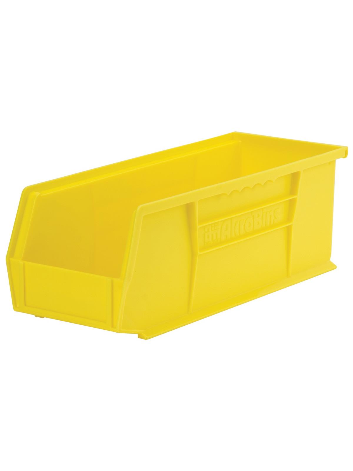 AkroBins are heavy-duty and securely stack on top of each other, sit on shelving, and hang from Akro-Mils racks, panels, rails and carts. Unaffected by weak acids and alkalis the sturdy one piece construction is water, rust and corrosion-proof. Finger grip allows for easy handling. Large label slot for easy identification of contents. Autoclavable up to 250° F. Guaranteed not to crack or break under normal load conditions as stated in the 1-year limited warranty. Optional dividers and labels available, see Related Items tab. AkroBins available in Red, Yellow, Blue, Green, Black, Stone, and Semi-Clear. FOB Shipping Point. Surcharge may apply.