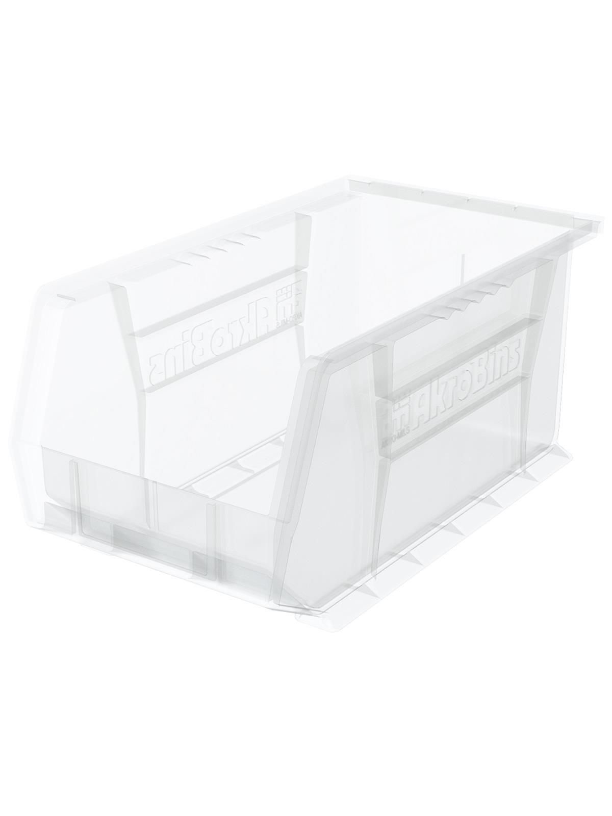 AkroBins are heavy-duty and securely stack on top of each other, sit on shelving, and hang from Akro-Mils racks, panels, rails and carts. Unaffected by weak acids and alkalis the sturdy one piece construction is water, rust and corrosion-proof. Finger grip allows for easy handling. Large label slot for easy identification of contents. Autoclavable up to 250° F. Guaranteed not to crack or break under normal load conditions as stated in the 1-year limited warranty. Optional dividers and labels available, see Related Items tab. AkroBins available in Red, Yellow, Blue, Green, Black, Stone, and Semi-Clear. FOB Shipping Point.