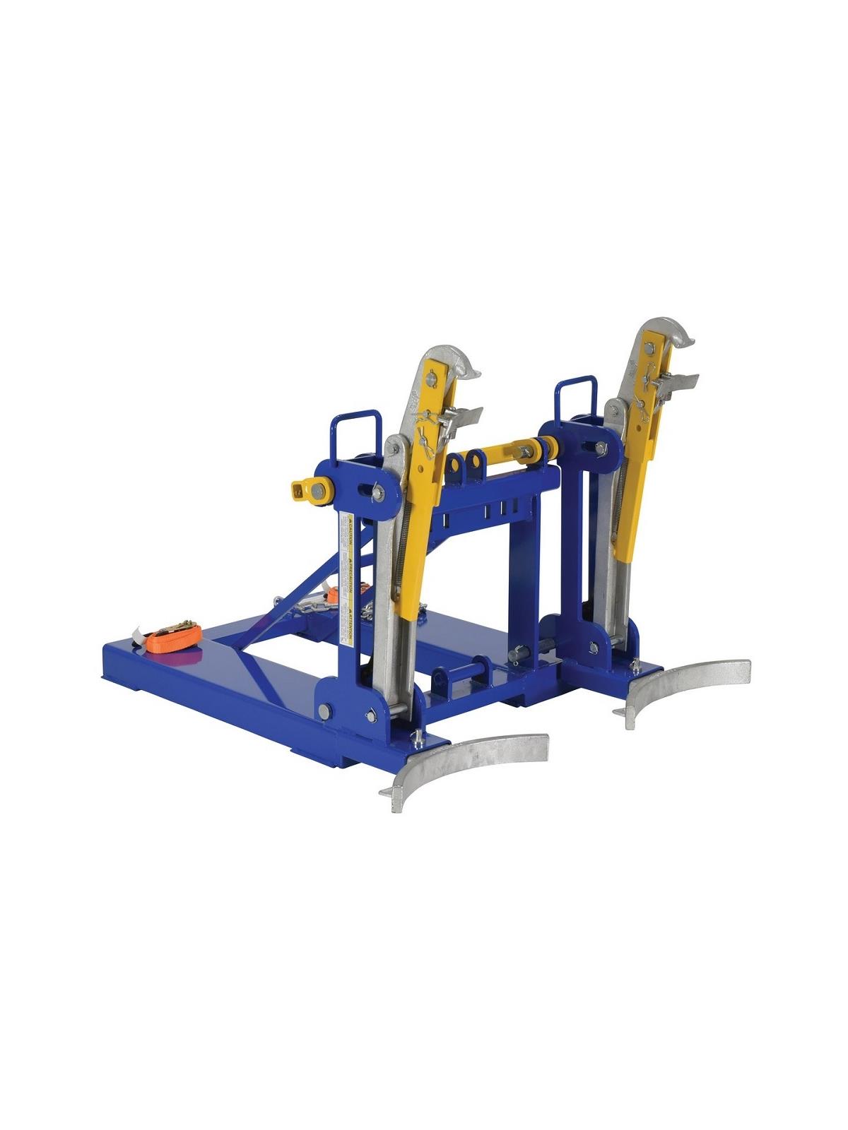 This time tested and proven design allows a fork truck operator to easily secure, move and release drums without leaving the seat of the fork truck. For use with open and closed head plastic, steel and fiber drums with a top lip strong enough to support the weight of the drum. Choose single drum or double drum configuration. Works with 30 and 55 gallon drums. All-welded sturdy construction. Low maintenance design. Includes safety chain to secure unit to carriage of fork truck. Powder coat blue finish. Fork pockets 7-1/2"W x 2-1/2"H usable. FOB Shipping Point. Due to tariffs and market conditions, pricing subject to change.