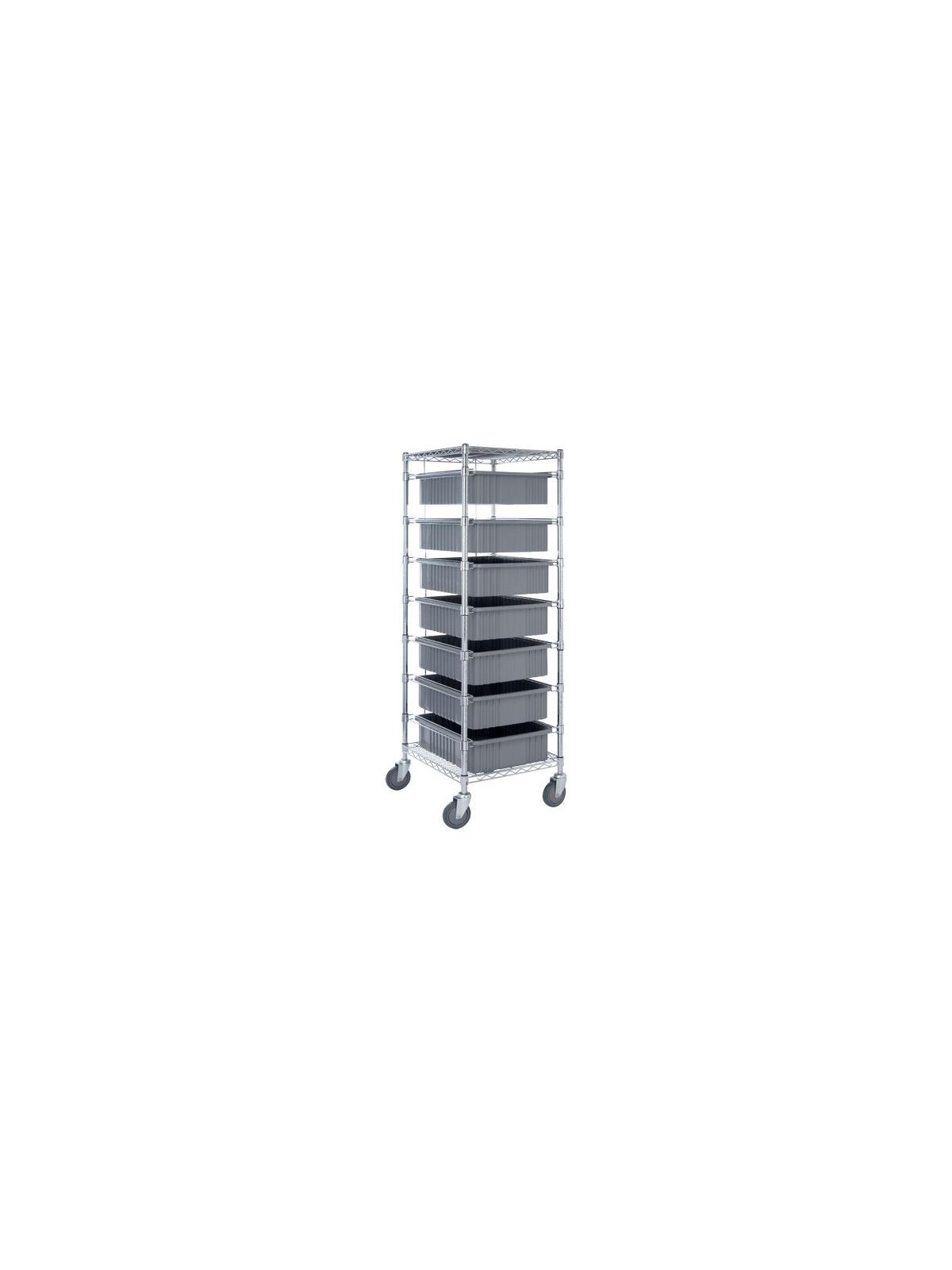Modular in design the slide positions are adjustable on 1" centers enabling the cart to work with various bins and/or trays. Bins available in Red, Blue and Gray. Chrome finish. FOB Shipping Point.