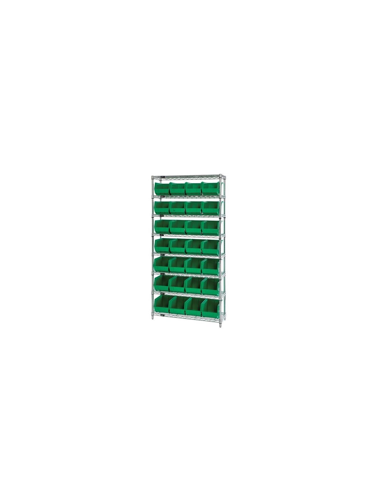 Combine stylish chrome shelving and parts organizing bins. Sturdy shelving unit supports loads up to 800 lbs. Choice of bins. Easy to assemble. Ultra Bins are available in Blue, Red, Yellow, Green, Ivory or Black. FOB Shipping Point.