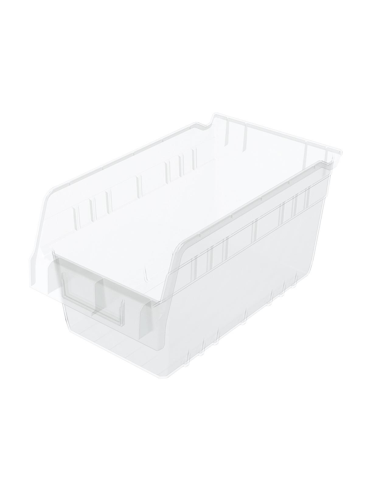Clear 6" ShelfMax® Bins expand storage capacity up to 85% over standard 4" bins. Rolled top edge for added strength when filled to capacity. Durable clear polypropylene construction. Optional lids and dividers available. FOB Shipping Point.