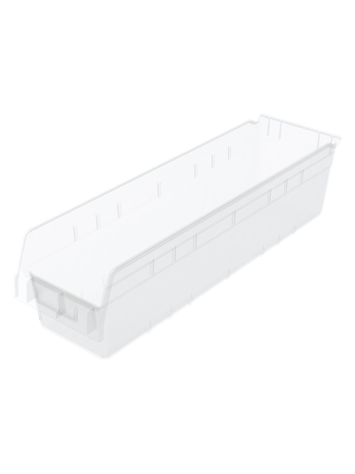 Clear 6" ShelfMax® Bins expand storage capacity up to 85% over standard 4" bins. Rolled top edge for added strength when filled to capacity. Durable clear polypropylene construction. Optional lids and dividers available. FOB Shipping Point.