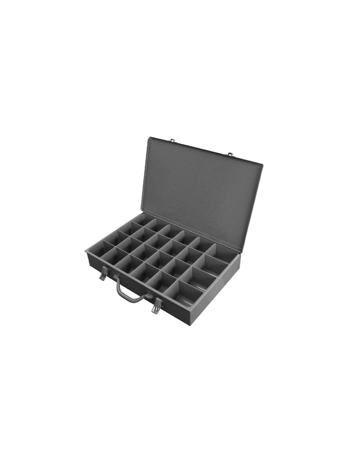 Efficient storage and organization for a variety of parts and components. Each compartment box interior is manufactured of polypropylene with scooped bottoms, both front and back for easy parts removal. Rugged steel, all-welded cabinets are reinforced for rigidity. Use on the workbench, counter or carry to the job site with convenient thumb-grip handles. Finished in acid and rust resistant Gray powder coating. FOB Shipping Point.