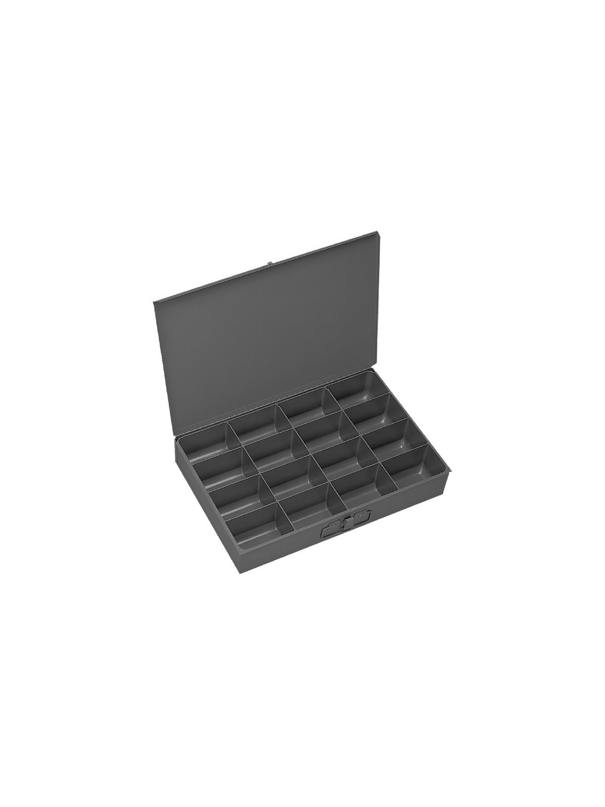 Efficient storage and organization for a variety of parts and components. Each compartment box interior is manufactured of polypropylene with scooped bottoms, both front and back for easy parts removal. Rugged steel, all-welded cabinets are reinforced for rigidity. Use on the workbench, counter or carry to the job site with convenient thumb-grip handles. Finished in acid and rust resistant Gray powder coating. FOB Shipping Point.