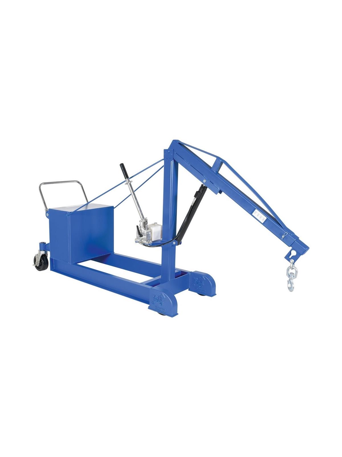 This crane has an adjustable boom to allow for maximum adjustments and versatility to lift a variety of loads. The boom is raised with a manual hydraulic hand pump or a push of a button on DC powered units. The boom also telescopes out for a greater reach. The counterbalance design eliminates the need for front legs, making the unit easier to maneuver and ideal for reaching tight, hard to reach areas. Units roll on two (2) rigid 8" x 2" glass-filled nylon and two (2) swivel 8" x 3" phenolic casters with side brake. FOB Shipping Point.
