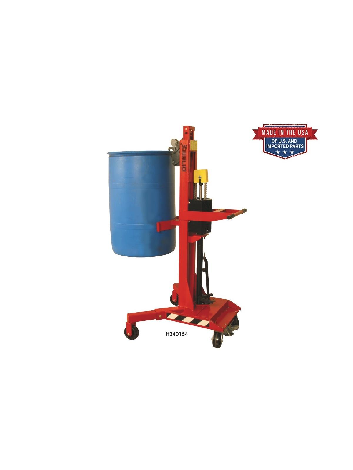 The ergonomic solution for lifting, transporting and placing drums on spill pallets. No need for the operator to touch the drum to raise, transport and lower. Features 1100 lb. capacity hydraulic jack for easy lifting of steel, poly, and fiber drums -- lifts 1" per stroke. Spring loaded grip holds any rimmed drum. Handles most 30, 55, and 85 gal. drums. Ergonomic design allows drums to be easily raised 20" above the floor. Swivel 5" x 2" phenolic casters for easy movement. Choose from five models - Standard, High Reach, Scale, Power Lift & Drive. FOB Shipping Point.
