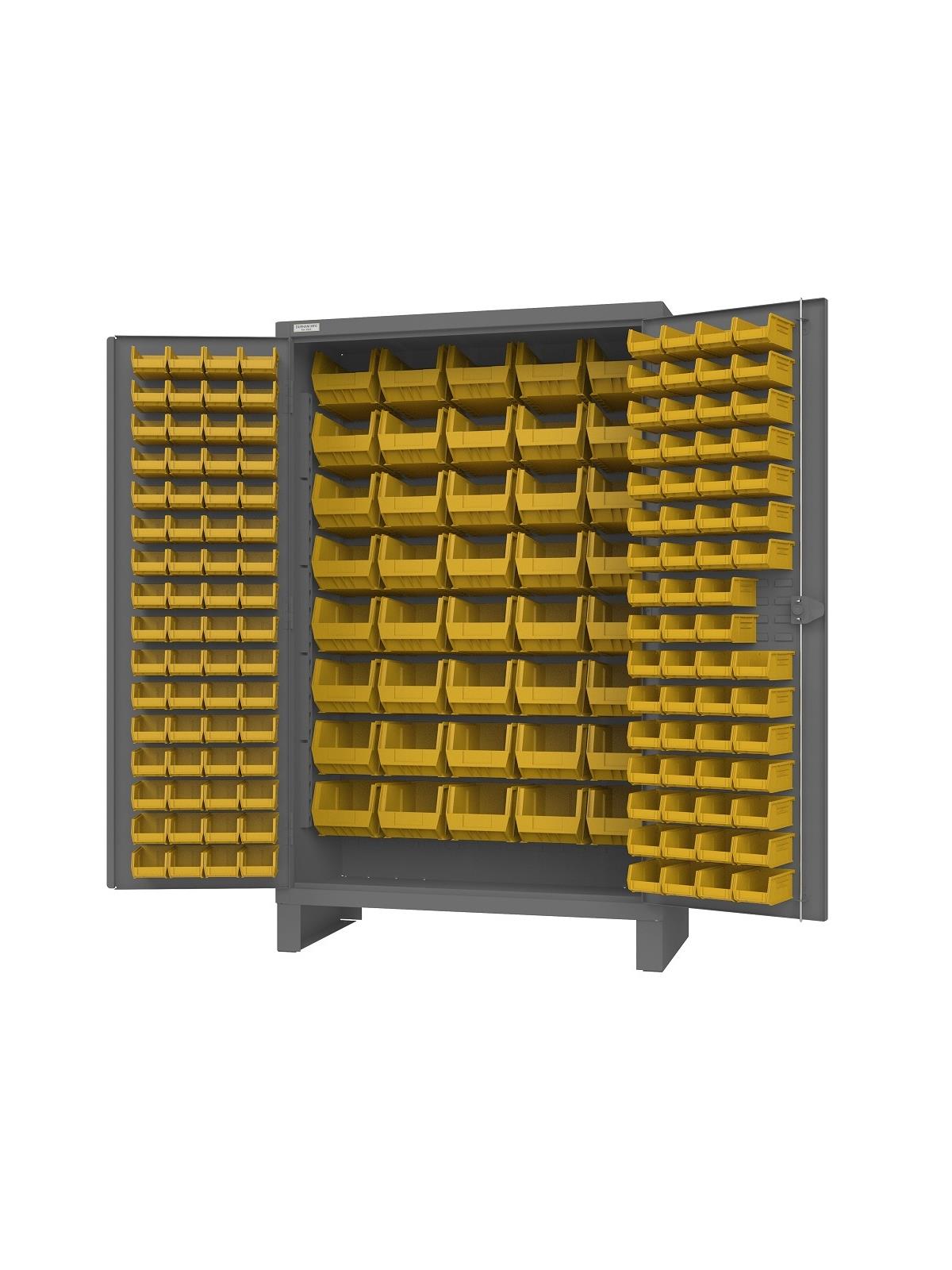 Fully welded louvered panels reinforce doors and hold Hook-On-Bins®.