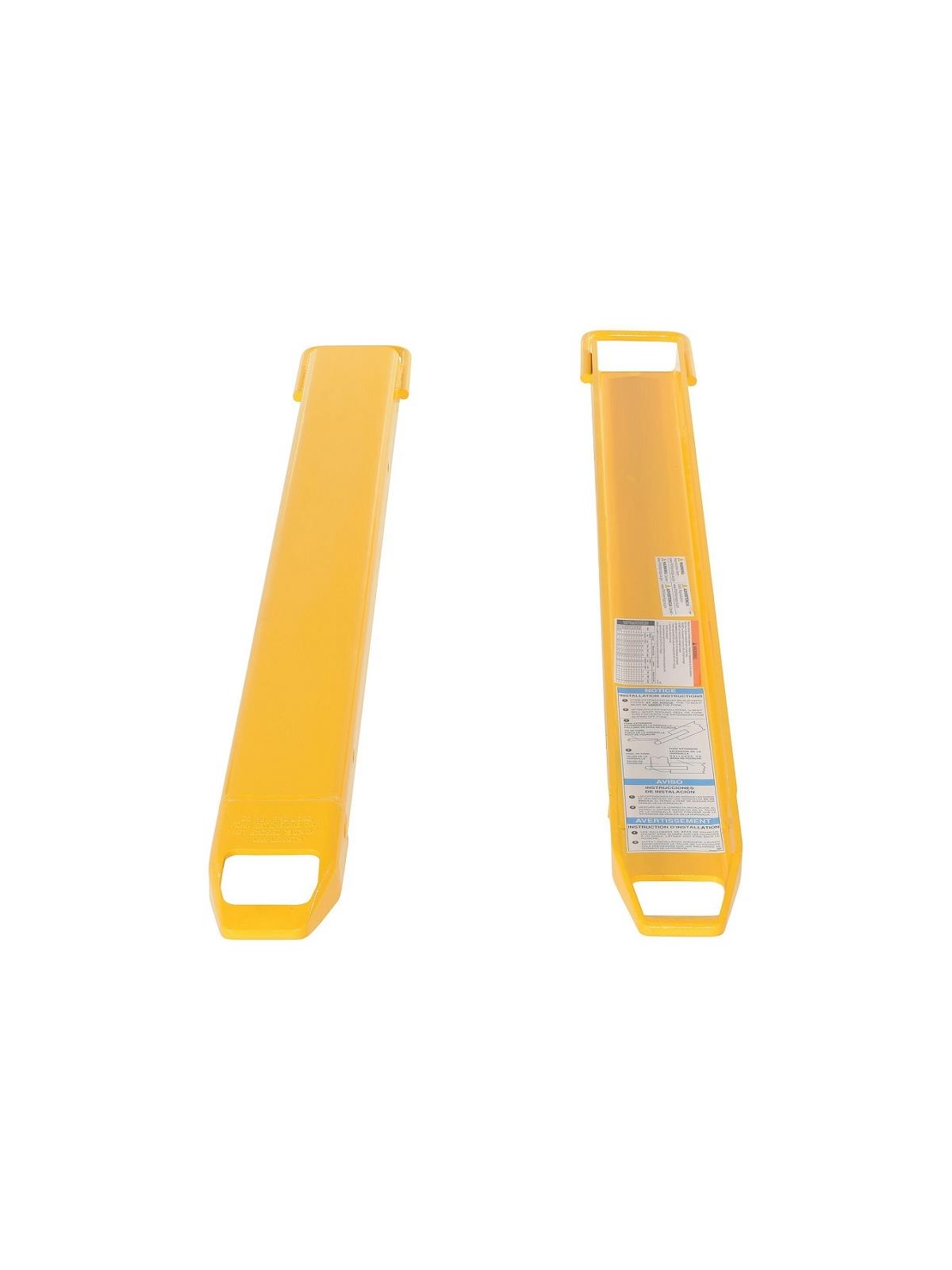 Rugged and durable welded steel construction with cast steel fork tips. Steel retaining strap prevents fork extensions from sliding off forks during use. Extensions are put on by sliding them up the fork at a 45° angle. OSHA regulations require that extensions are no more than 150% of the existing fork length. Powder coat Yellow finish. FOB Shipping Point. Due to tariffs and market conditions, pricing subject to change. See Related Items tab for High Strength Fork Extensions.