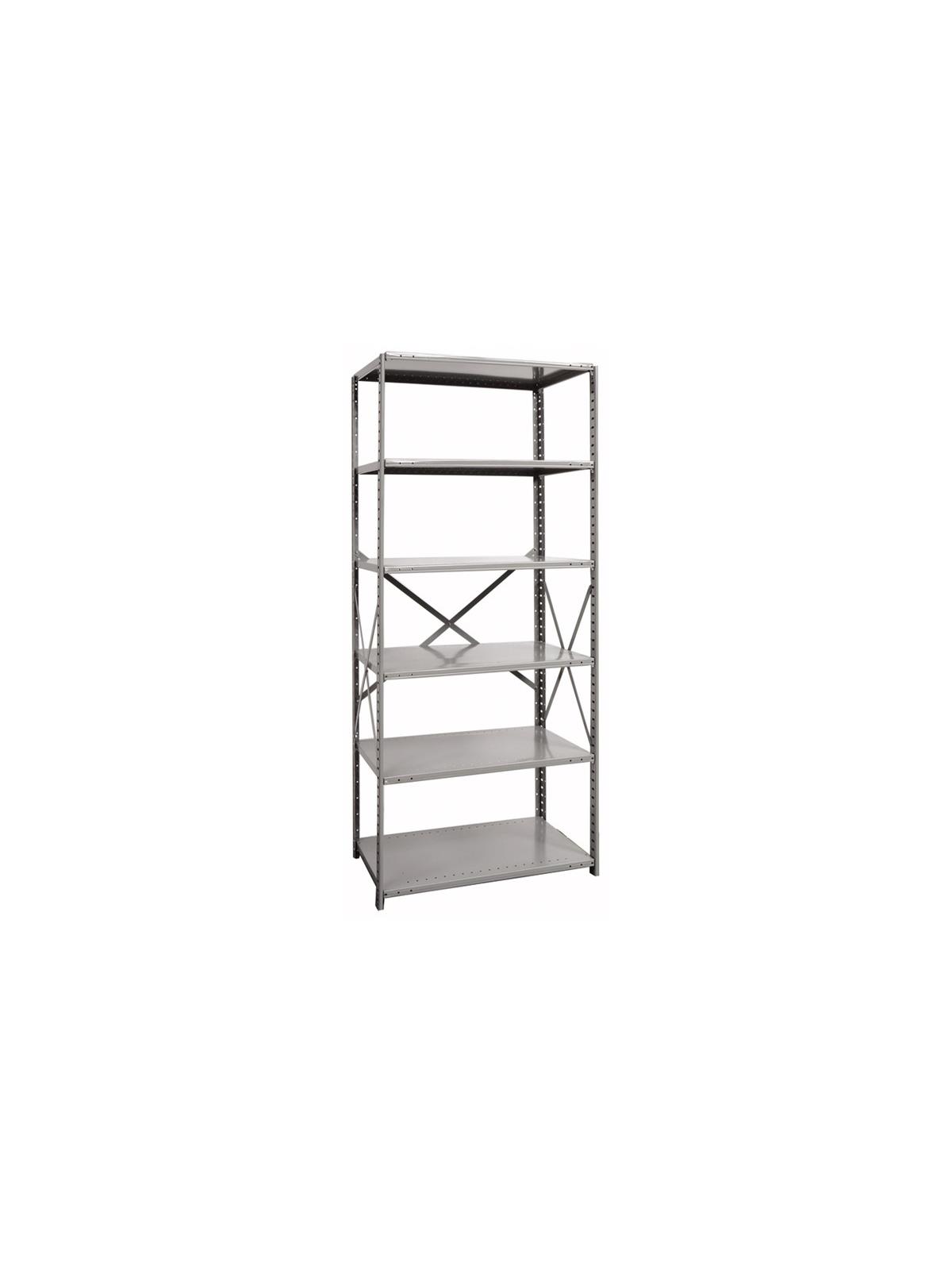 Shelves are box formed at front and back allowing high capacity storage with minimal deflection. Sides of shelves are triple flanged adding to shelf strength. Compression shelf clips improve overall unit capacity. Posts are punched to allow shelves to be adjusted top to bottom at 1-1/2” on center. Beaded front posts allow use of full shelf width and are common between adjoining units reducing assembly and installation time as well as reducing cost. Angle back posts can be bolted together when joining units side-by-side or back-to-back. Side and back sway braces eliminate units sway providing a safe storage solution. Color: Dark Gray (HG). FOB Shipping Point.