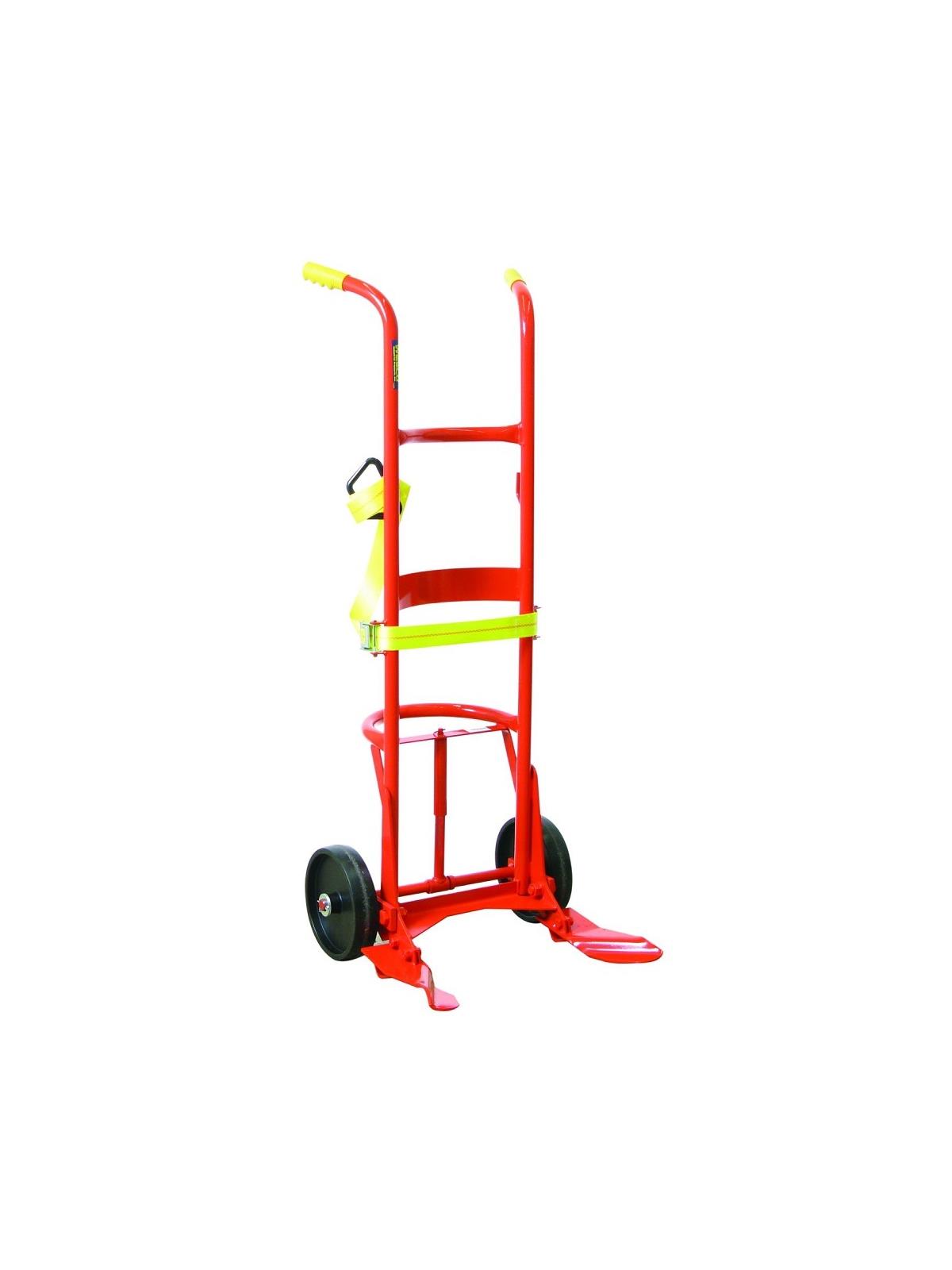 A) Standard Poly Drum Truck Handles all poly and fiber drums except overpacks. Features replaceable "feet" and belt. Wide "feet" and belt eliminate the risk of drums being punctured by nose prongs and chime hooks. Floating axle reduces effort required to break over and balance the load. 23.5"D. Patented design. B) Overpack Poly Drum Truck (not shown-similar in appearance to Standard Poly Drum Truck) Recommended primarily for handling of 85 gallon overpacks. Long belt allows truck to handle all poly drums. Replaceable "feet" and belt. Wide "feet" and belt eliminate the risk of drums being punctured by nose prongs and chime hooks. Floating axle reduces effort required to break over and balance the load. 23.5"D. Patented design. C) Poly Truck w/ Drain Stand Use as a poly drum truck and as a convenient drain stand. Wide "feet" and belt eliminate the risk of drums being punctured by nose prongs and chime hooks. Handles all polydrums except overpacks. 6" x 1.5" rear wheel. Patented design. FOB Shipping Point. Steel surcharges may apply.