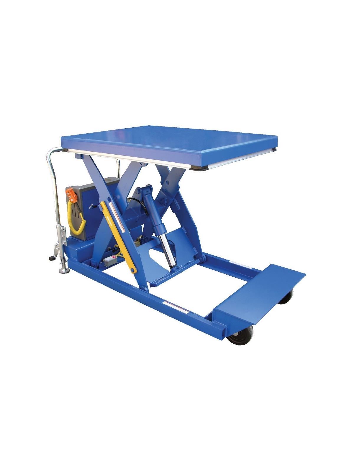 Heavy duty 12V DC power unit with deep cycle battery and an on-board battery charger is standard. Rolls on 8" glass filled nylon casters, 2 swivel, 2 rigid. Complete with floor lock and patented electric pinch point guards. Push buttons to raise and lower lift are located on the power unit and in the pendant style push button control. ON/OFF control for better security is built into the power unit. Add 28-1/2" to platform length for the overall length. Battery Charge Indicator Gauge now standard on all DC units. FOB Shipping Point. Due to tariffs and market conditions, pricing is subject to change. See Related Items tab for Portable Scissor Lift Table Options.