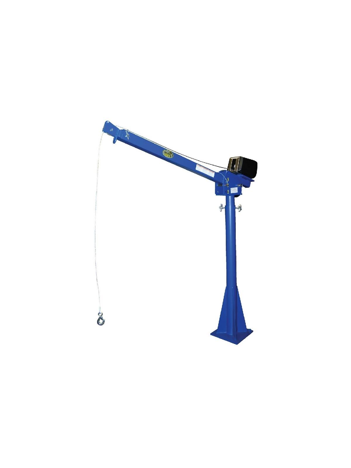 B) The economical answer to your material handling problems. Offers light duty, intermittent use. Up to 1,500 lbs. uniform capacity at 27-13/16" boom extension. 360° locking manual rotation, 25' of 7/32" cable with hook on AC units, 46' of 3/16" cable on DC units.
