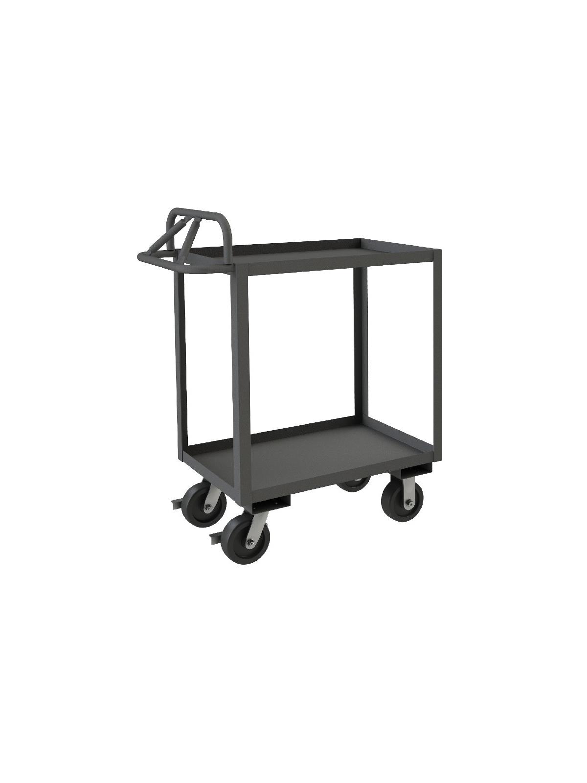 Constructed with 1-1/2" x 1/8" angle iron uprights for added strength. Heavy duty 14 gauge steel shelves. Sturdy, tubular, ergonomic handle has 3 positions ensuring maximum comfort. Standard units have 1-1/2" lips. ALD units have all lips down, TLD units have top lips down. Durable, gray, textured powder coat finish. FOB Shipping Point.