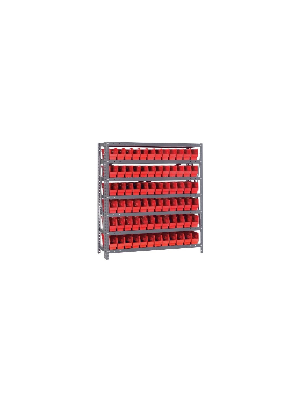Rugged 350 lb. capacity per shelf, standard shelving unit will keep parts organized and readily accessible. Gray enamel finish will not rust or corrode. 12-HQSB100, 8-HQSB101, 5-HQSB102, 4-HQSB107, 3-HQSB109 fit across a standard 36"W x 12"D shelf. 8-HQSB103, 5-HQSB104, 4-HQSB108, 3-HQSB110 fit across a 36"W x 18"D shelf. Bins are available in Blue, Yellow, Red, Green, Ivory or Black. FOB Shipping Point.