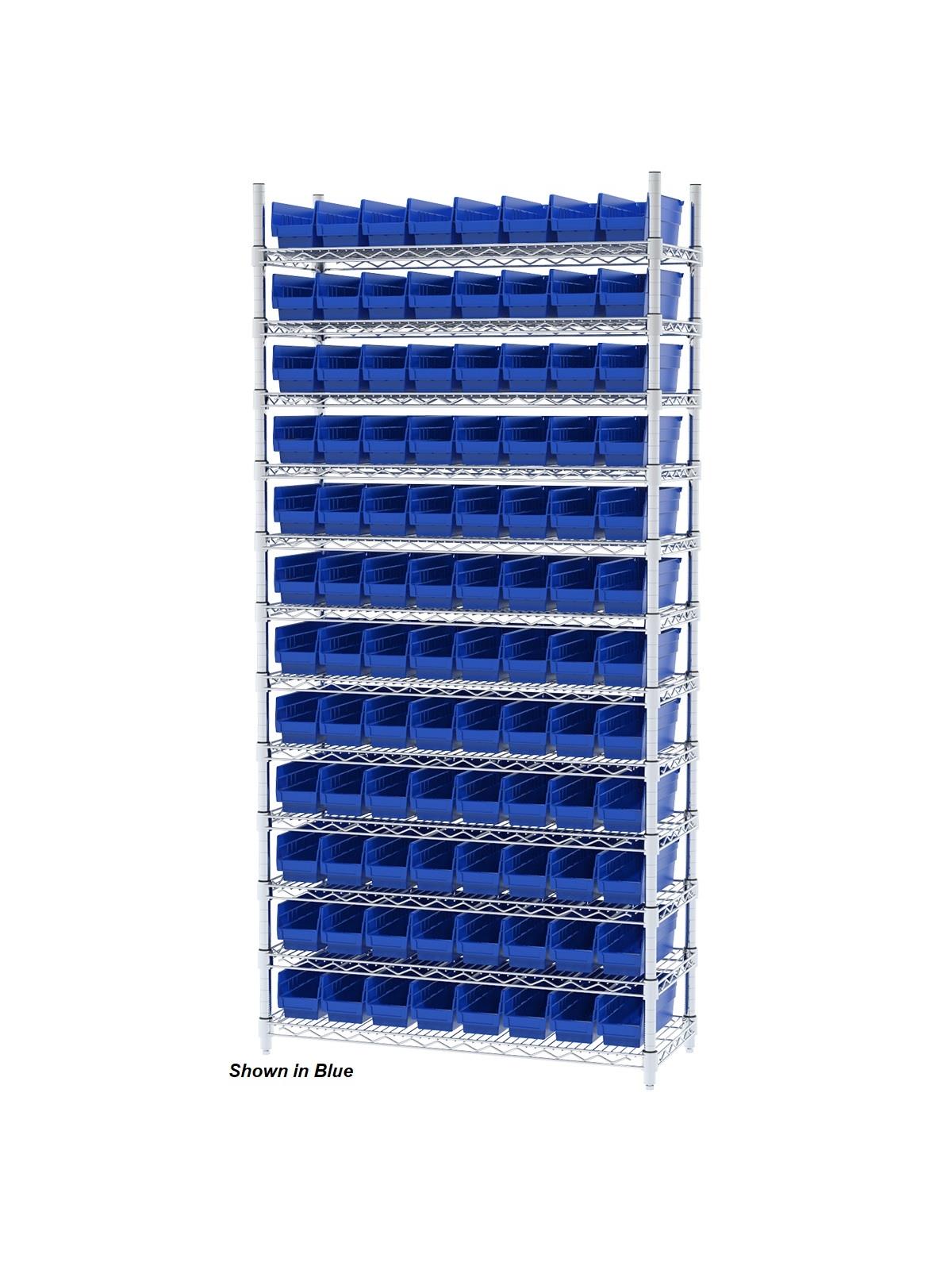 Shelf Bin Wire Systems can be configured for use with 36, 48, 60 or 96 bins providing a versatile system for storage and material handling. Durable and strong polypropylene shelf bins outlast corrugated bins. Bins available in Blue, Red, Yellow, or Semi-Clear. FOB Shipping Point. WIRE SHELVING ADVANTAGES: