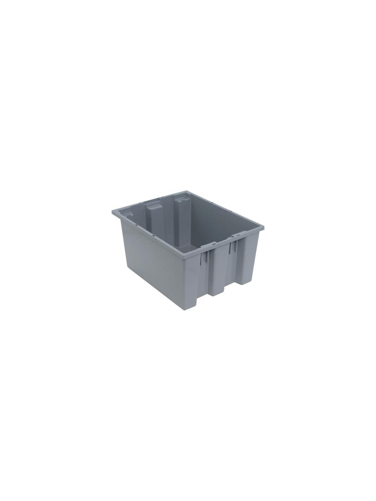 High density polypropylene, injection molded for uniform wall thickness and added strength. Lids snap tightly and securely for a safe fit. Quick 180° turn offers space-saving stacking and nesting. Stacks 6 high. Fits 48" x 40" pallets (6 SNT190, 4 SNT230 per level). Usable in temperatures from -10° to 250°F. Available in Gray, Blue, Red or Clear. Optional clear, see-thru Stack and Nest Label Holder (HSNH010) and optional Dolly (HDLY-3018) available. FOB Shipping Point.