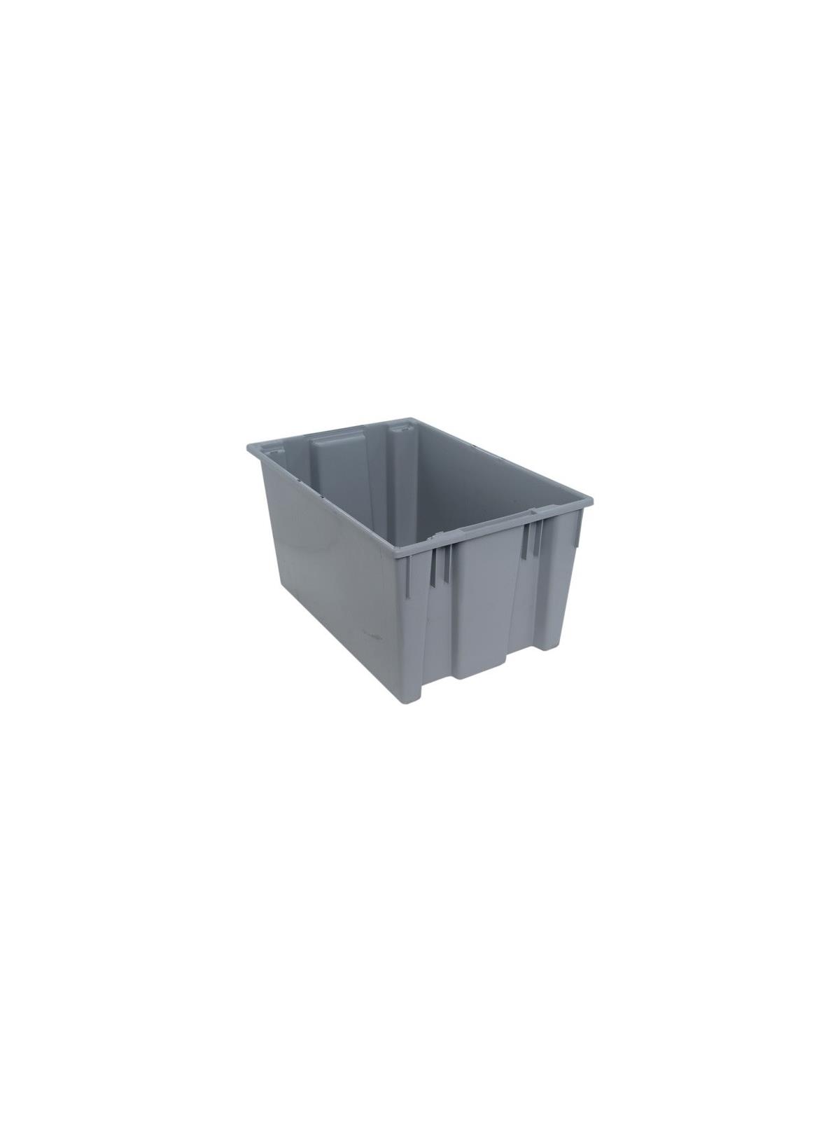 High density polypropylene, injection molded for uniform wall thickness and added strength. Lids snap tightly and securely for a safe fit. Quick 180° turn offers space-saving stacking and nesting. Stacks 6 high. Fits 48" x 40" pallets (6 SNT190, 4 SNT230 per level). Usable in temperatures from -10° to 250°F. Available in Gray, Blue, Red or Clear. Optional clear, see-thru Stack and Nest Label Holder (HSNH010) and optional Dolly (HDLY-3018) available. FOB Shipping Point.