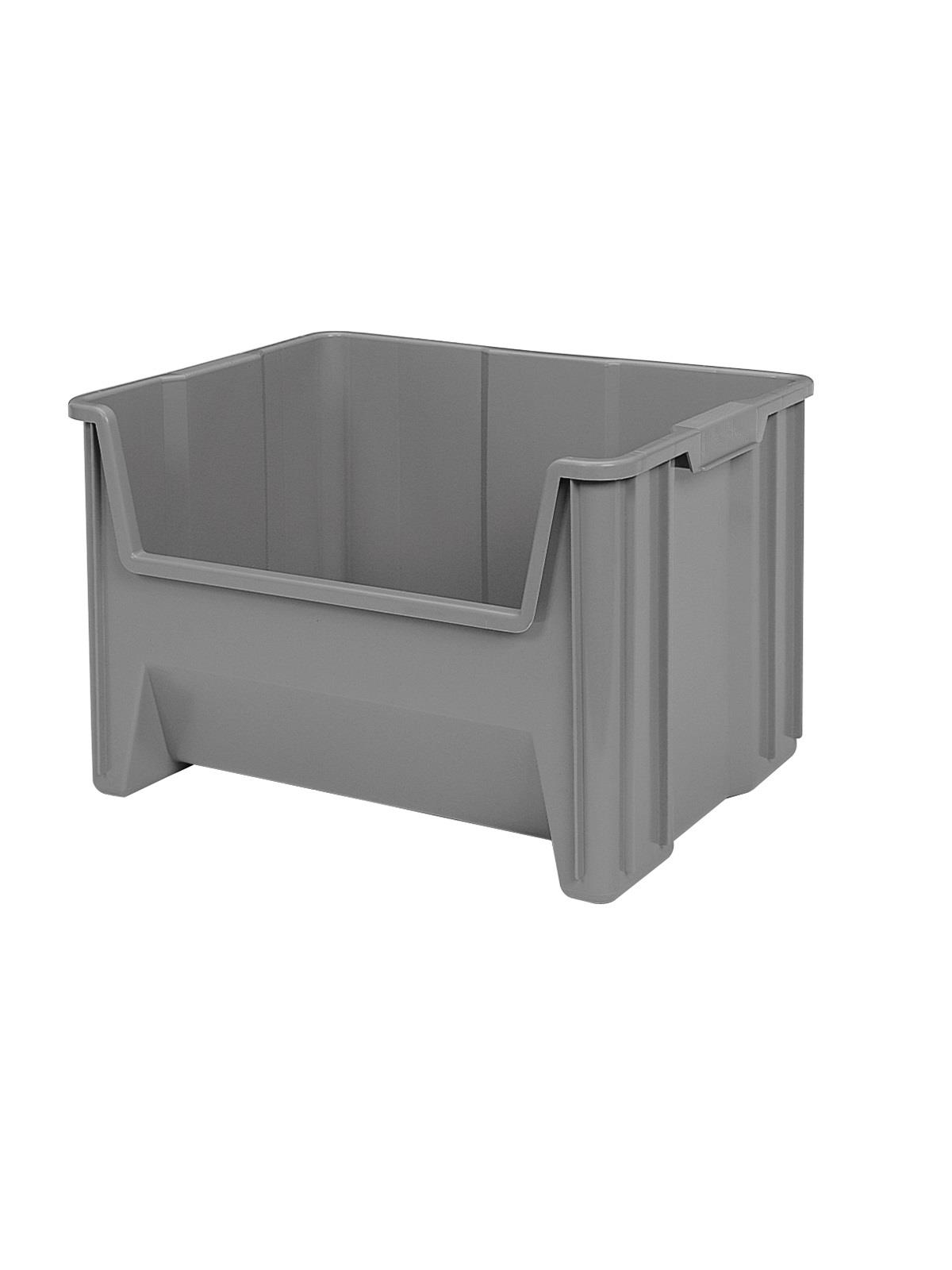 • Bins stack to form tall, stable storage arrangements on floors or standard shelving.