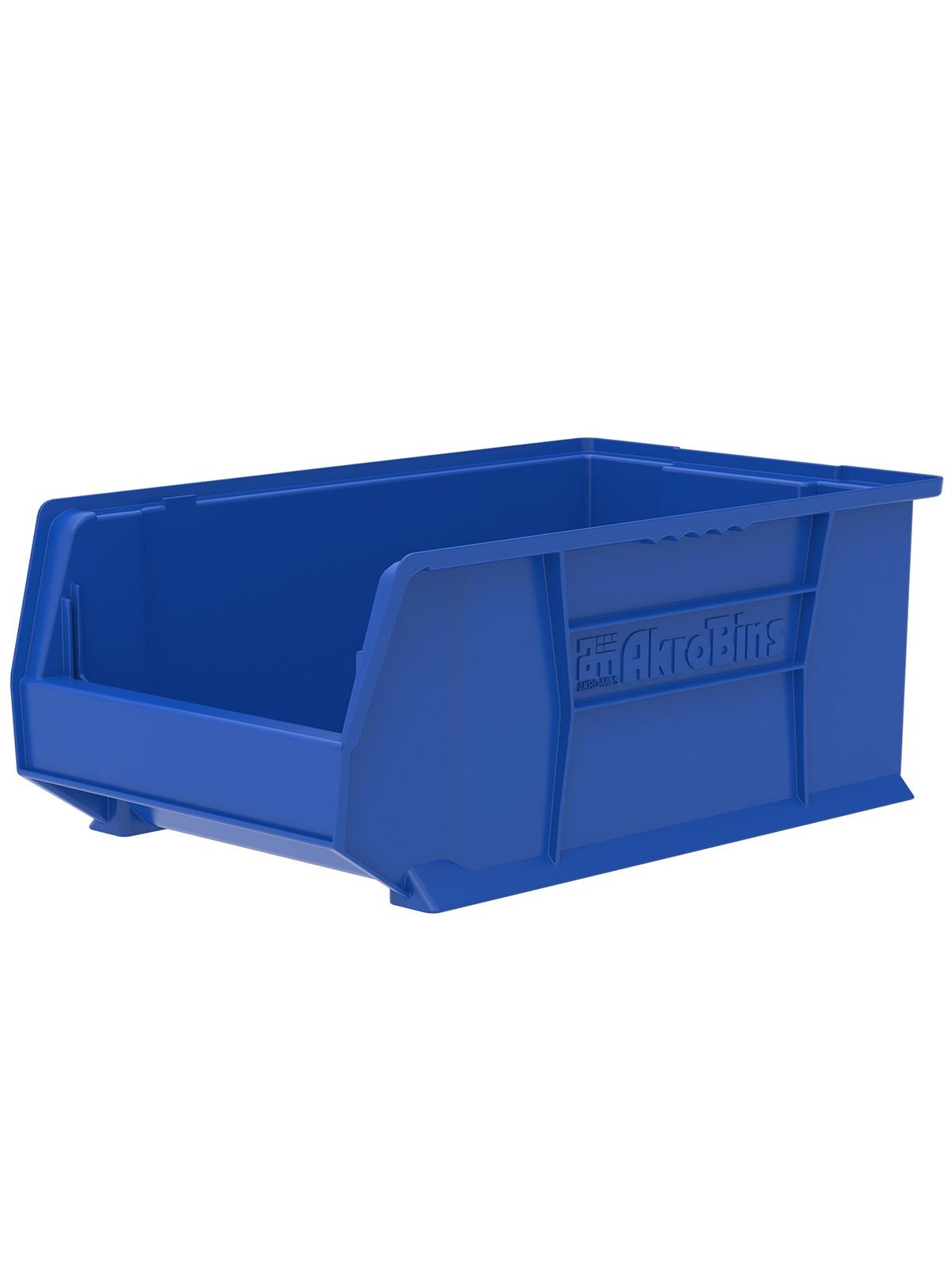 • Heavy-duty bins securely stack atop each other -- or sit on shelving.