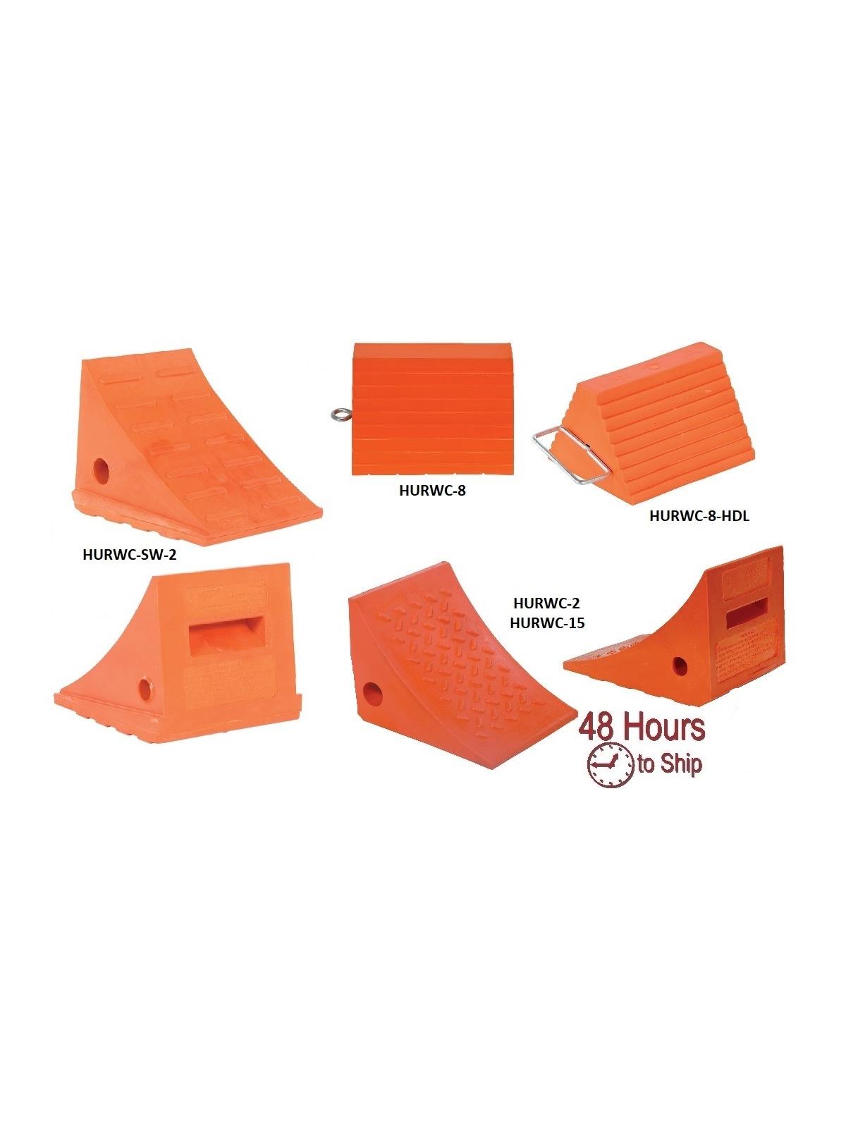 Bright orange for greater visibility. Incoming and outgoing drivers can easily see chock for added safety. Tread on chock face provides better grip. Extreme capacity models featured. FOB Shipping Point.